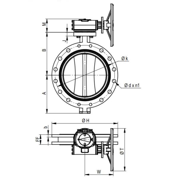 Double Flanged Butterfly Valve Drawing and Datasheet